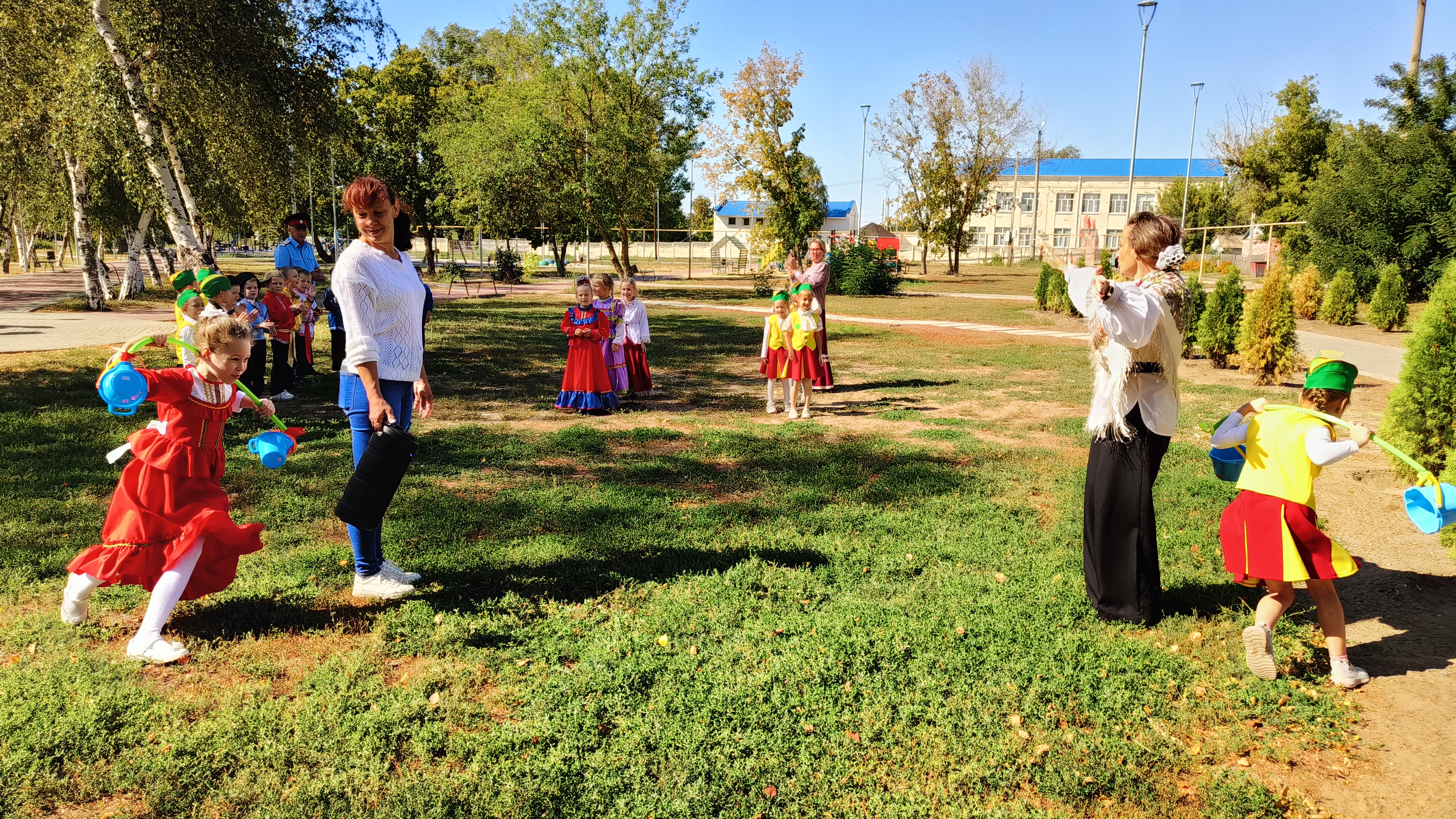 Казачьи гуляния 18 сентября 2025 В рамках Всероссийского фестиваля-конкурса Всероссийского казачьего общества «Во славу Отечества!» воспитатель Марина Перцева провела «Казачьи гуляния» в парке «Добра» с детьми подготовительной группы «Звёздочки». На мероприятие были приглашены: хормейстер Обливского РДК Ирина Владимировна Краева и командир Обливской казачьей дружины Сергей Викторович Кочетов. Педагог с детьми и гостями водили хороводы, исполняли казачьи песни и участвовали в подвижных играх. Мероприятие получилось ярким и весёлым, подарив радость как детям, так и взрослым. #Фестиваль_Во_славу_Отечества #конкурсыВсКО #казачьеобразование