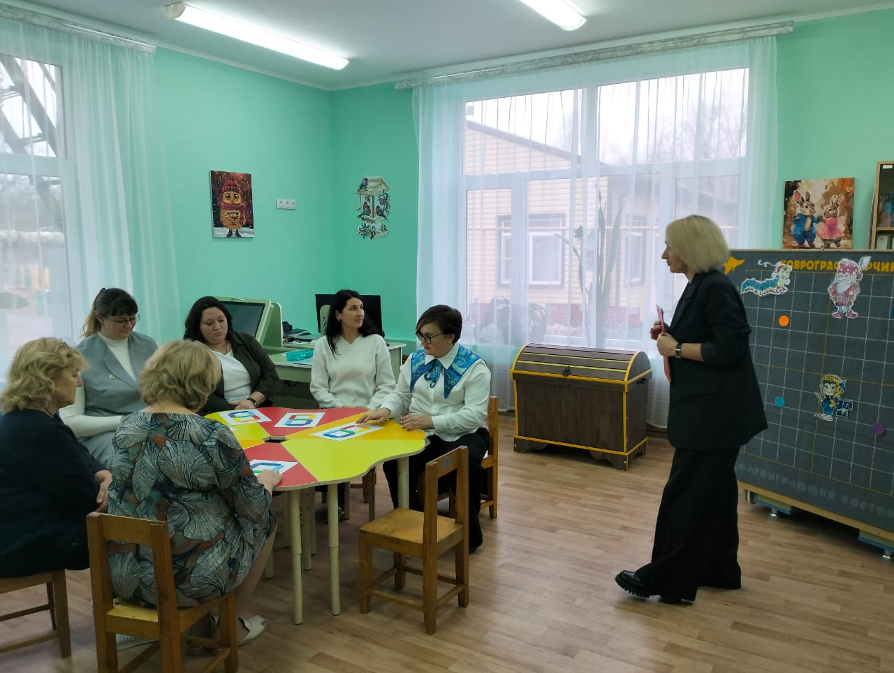 Мастер-класс «Развивающие игры В.В. Воскобовича» 11 декабря 2025 На базе детского сада «Тополёк» 11 декабря 2025 года состоялся профессиональный мастер-класс для педагогов дошкольных образовательных учреждений. Мероприятие объединило воспитателей детских садов «Ивушка» и «Тополёк» с целью обмена опытом и повышения квалификации в области современных образовательных технологий. Опытный воспитатель детского сада «Тополёк» Марина Перцева выступила в роли ведущего специалиста и представила коллегам инновационные подходы к организации образовательной деятельности с использованием развивающих игр В.В. Воскобовича. В ходе мастер-класса были продемонстрированы и подробно рассмотрены игровые пособия. Кроме этого, педагог показала эффективные методики интеграции данных пособий в образовательный процесс и раскрыла потенциал каждого игрового средства для всестороннего развития детей. Особое внимание было уделено практическим аспектам применения развивающих игр в различных образовательных ситуациях. В завершение всем участникам были вручены методические памятки «Игры В.В. Воскобовича», содержащие практические рекомендации по использованию представленных пособий в работе с дошкольниками.