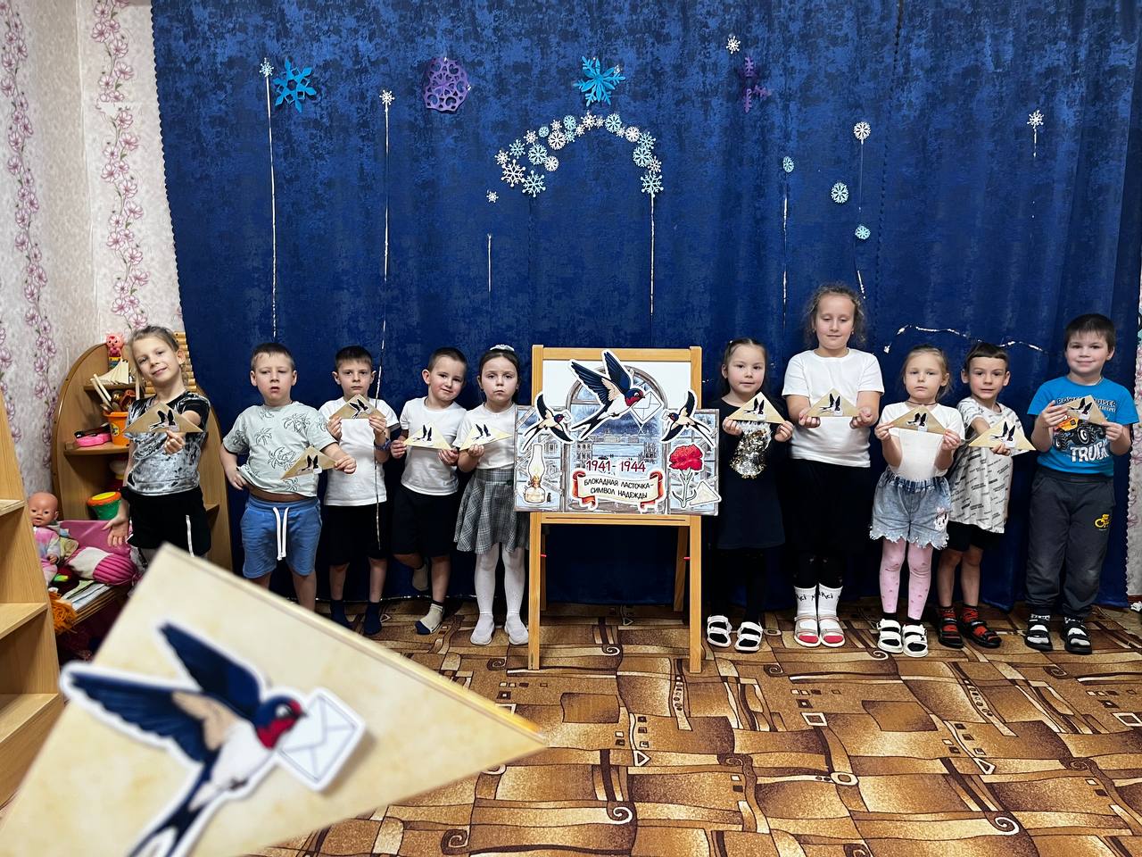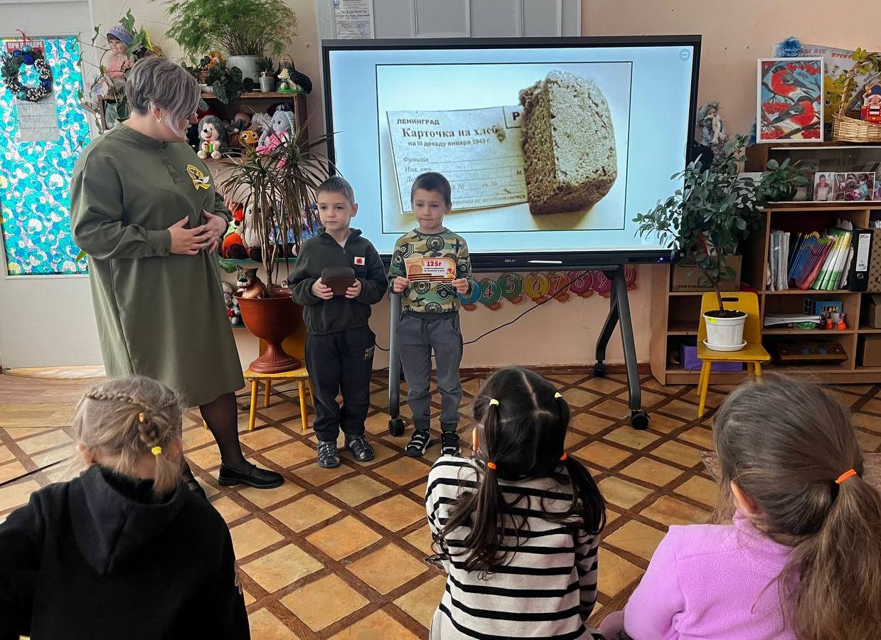 Тематическая неделя, посвящённая памятным датам Великой Отечественной войны 04 февраля 2026 В детском саду «Ивушка» под руководством учителя-логопеда Татьяны Дундуковой с 29 января по 3 февраля была проведена тематическая неделя, посвящённая памятным датам Великой Отечественной войны. Открылась тематическая неделя мастер-классом «Блокадная ласточка — символ надежды». В ходе занятия воспитанники разновозрастной группы «Ромашка» познакомились с понятием «блокада» и узнали, почему изображение ласточки стало символом надежды для жителей блокадного Ленинграда. В практической части мероприятия дети выполнили рисунки с добрыми сюжетами и оформили их в виде треугольных писем, аналогичных фронтовым письмам военных лет. Накануне Дня снятия блокады Ленинграда для родителей, сотрудников, воспитанников и гостей детского сада была организована памятная акция «Блокадный хлеб». В рамках акции каждому участнику был вручен символический конверт с 125 граммами ржаного хлеба — минимальной нормой выдачи хлеба в самые тяжёлые дни блокады. Для воспитанников разновозрастной группы «Солнышко» был проведён час памяти «Детям о подвиге блокадного Ленинграда». Дети познакомились с трагическими страницами истории блокады, узнали о жизни и судьбах детей, оказавшихся в осаждённом городе. Завершением мероприятия стал коллективный просмотр мультфильма «Блокадные сказки Серафимы», повествующего о семье, пережившей блокаду Ленинграда. В День победы советских войск в Сталинградской битве воспитанники познакомились с историческим значением данной памятной даты, узнали о переименовании города Сталинграда в Волгоград и о присвоении ему почётного звания города-героя. Дети совершили виртуальную экскурсию на Мамаев курган, познакомились с панорамой «Разгром немецко-фашистских войск под Сталинградом» и узнали о героическом подвиге сержанта Павлова. В память о 200 днях Сталинградской битвы воспитанники изготовили тематические праздничные открытки. Проведение подобных мероприятий способствует формированию у детей уважительного отношения к историческому прошлому, развитию чувства сопереживания и укреплению веры в силу добра. Сохранение памяти о героическом наследии страны является важной составляющей патриотического воспитания подрастающего поколения.