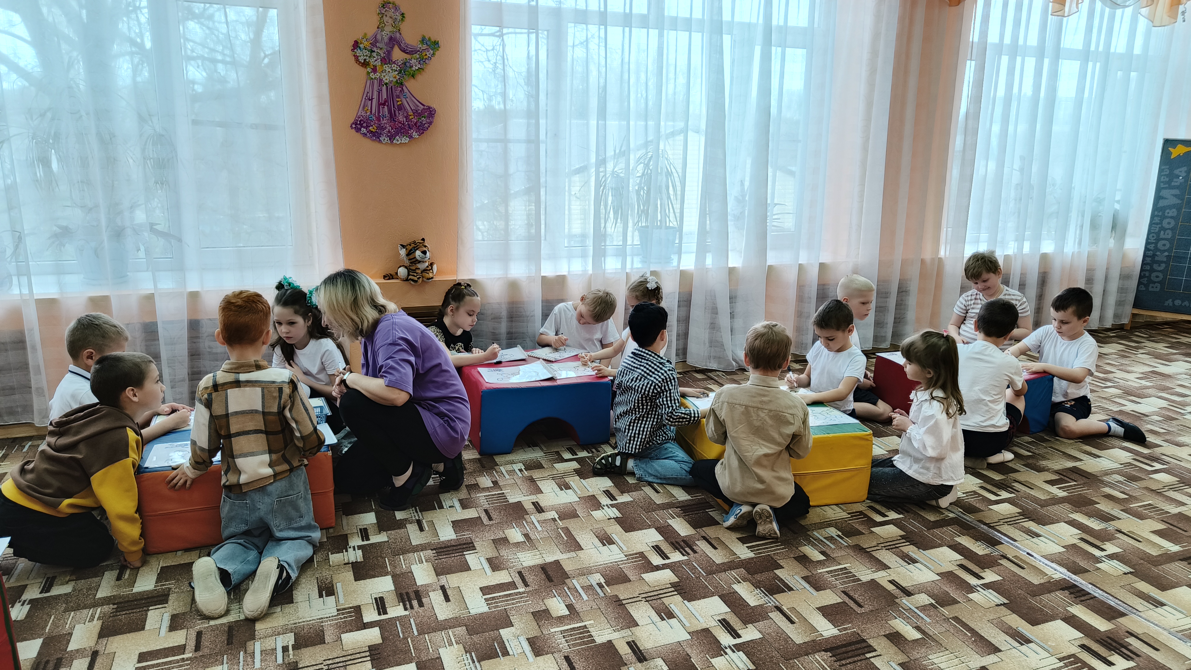 Физкультурно-познавательный досуг «Школа подготовки космонавтов». 10 апреля 2026 В рамках Всероссийской недели космоса воспитатель детского сада «Тополёк» Марина Перцева провела физкультурно-познавательный досуг «Школа подготовки космонавтов» с использованием развивающих игр В. В. Воскобовича. В мероприятии приняли участие воспитанники подготовительных групп детских садов «Ивушка» и «Тополёк». В ходе мероприятия детям было представлено игровое сюжетное сопровождение: обучение юных космонавтов организовано жителями Фиолетового леса — Радужными гномами. Воспитанники с интересом и высокой активностью выполняли предложенные задания: создавали «скафандр» с использованием «Игровизоров», расшифровывали фразу запуска ракеты на панно «Волшебные восьмёрки», конструировали ракету по образцу из «Волшебных квадратов», разгадывали тематические загадки, а также выкладывали на «Коврографе» планеты Солнечной системы. В программу досуга были включены музыкальные разминки, способствующие поддержанию двигательной активности детей. По завершении мероприятия всем участникам были вручены «космическое питание» и «удостоверения настоящих космонавтов».