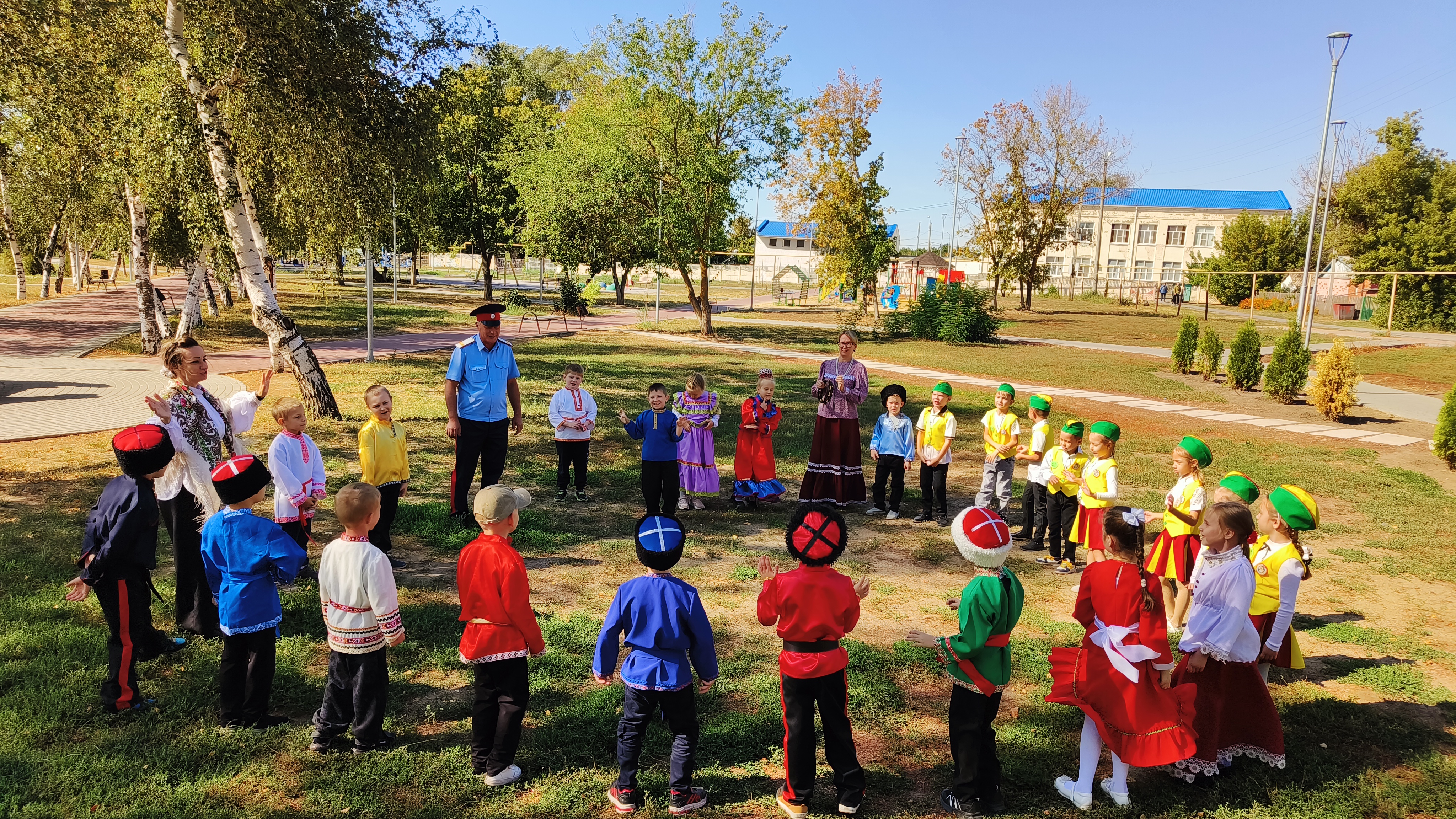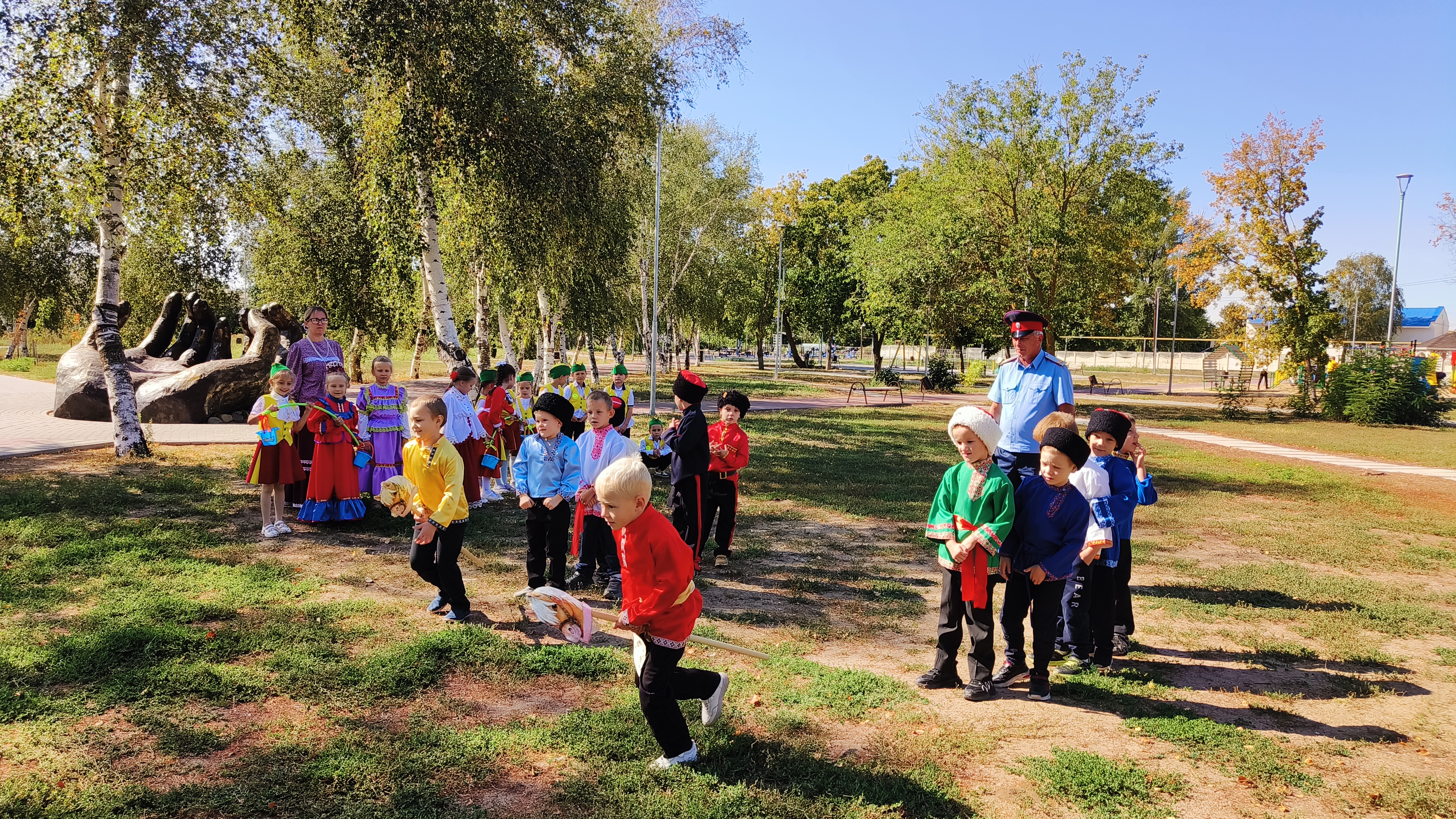 Казачьи гуляния 18 сентября 2025 В рамках Всероссийского фестиваля-конкурса Всероссийского казачьего общества «Во славу Отечества!» воспитатель Марина Перцева провела «Казачьи гуляния» в парке «Добра» с детьми подготовительной группы «Звёздочки». На мероприятие были приглашены: хормейстер Обливского РДК Ирина Владимировна Краева и командир Обливской казачьей дружины Сергей Викторович Кочетов. Педагог с детьми и гостями водили хороводы, исполняли казачьи песни и участвовали в подвижных играх. Мероприятие получилось ярким и весёлым, подарив радость как детям, так и взрослым. #Фестиваль_Во_славу_Отечества #конкурсыВсКО #казачьеобразование