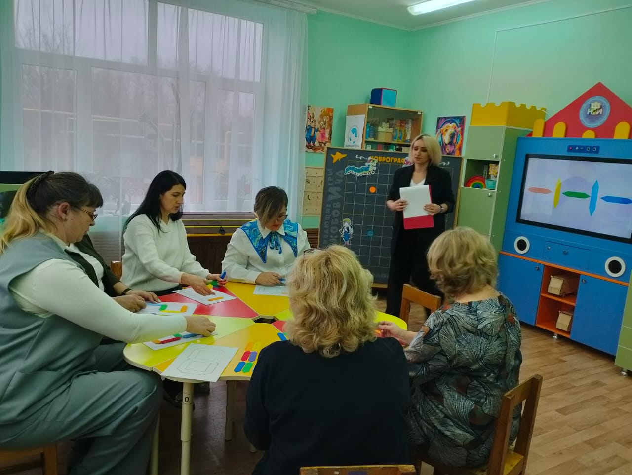 Мастер-класс «Развивающие игры В.В. Воскобовича» 11 декабря 2025 На базе детского сада «Тополёк» 11 декабря 2025 года состоялся профессиональный мастер-класс для педагогов дошкольных образовательных учреждений. Мероприятие объединило воспитателей детских садов «Ивушка» и «Тополёк» с целью обмена опытом и повышения квалификации в области современных образовательных технологий. Опытный воспитатель детского сада «Тополёк» Марина Перцева выступила в роли ведущего специалиста и представила коллегам инновационные подходы к организации образовательной деятельности с использованием развивающих игр В.В. Воскобовича. В ходе мастер-класса были продемонстрированы и подробно рассмотрены игровые пособия. Кроме этого, педагог показала эффективные методики интеграции данных пособий в образовательный процесс и раскрыла потенциал каждого игрового средства для всестороннего развития детей. Особое внимание было уделено практическим аспектам применения развивающих игр в различных образовательных ситуациях. В завершение всем участникам были вручены методические памятки «Игры В.В. Воскобовича», содержащие практические рекомендации по использованию представленных пособий в работе с дошкольниками.