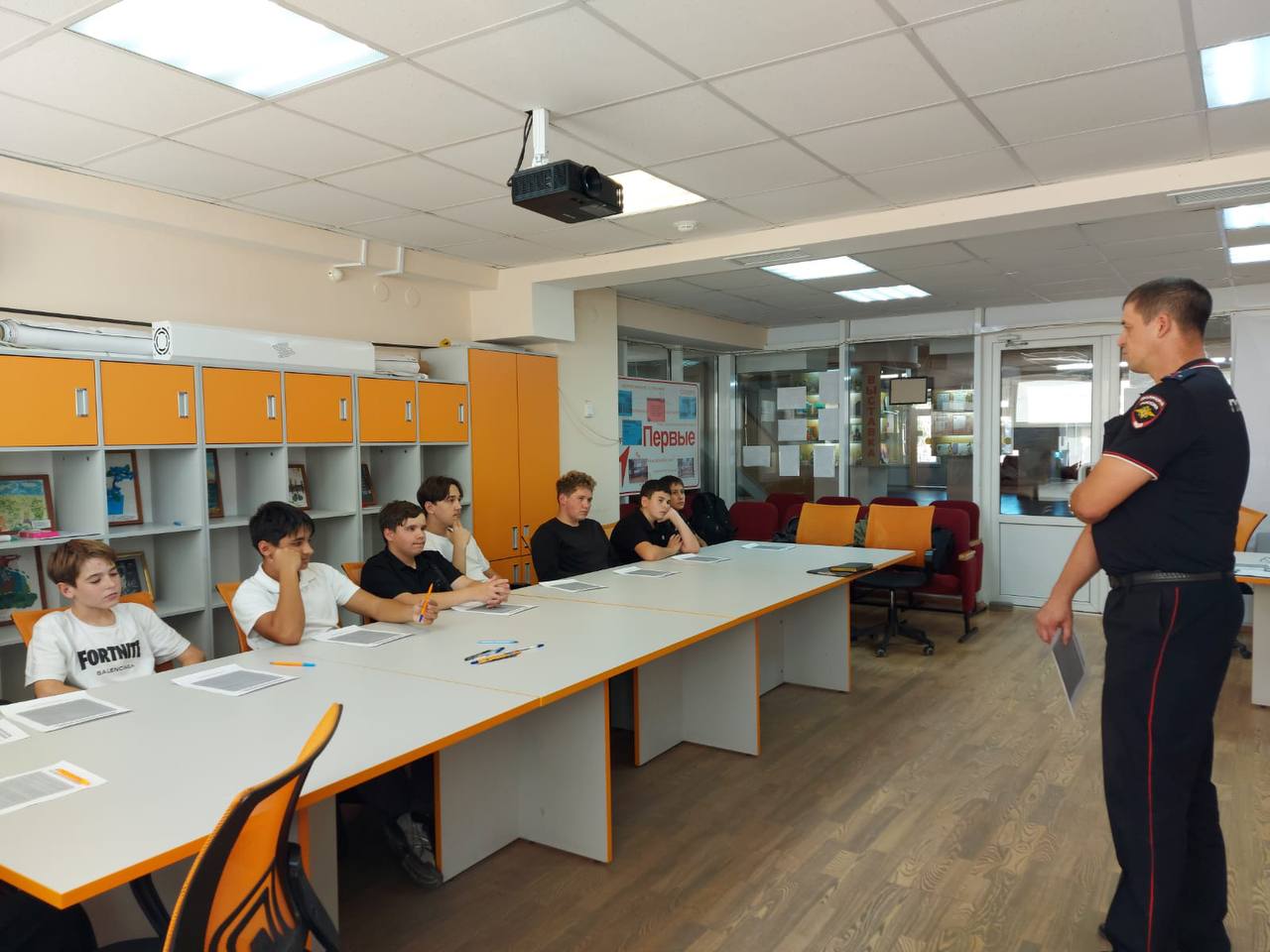 Месячник «Территория безопасности» 10 октября 2025 23 сентября 2025 года в рамках месячника «Территория безопасности» на базе Центра социального проектирования было проведено профилактическое мероприятие, направленное на формирование у подрастающего поколения устойчивого иммунитета к идеологии экстремизма и терроризма. Ребята 14-16 лет под руководством педагога дополнительного образования Комиссаровой Полины Камоевны и инспектора ПДН Шестакова Александра Александровича ознакомились с правовым диктантом и нашли в нём правовые ошибки. Этой работе предшествовала познавательная беседа с инспектором ПДН Шестаковым А.А, который объяснил, как распознать опасный контент, противодействовать манипуляциям и куда обращаться в случае подозрительных ситуаций. Главная цель таких встреч – не просто проинформировать, а вооружить молодёжь практическими знаниями и навыками критического мышления. Только общими усилиями мы можем создать по-настоящему безопасную среду, где нет места агрессии и нетерпимости.