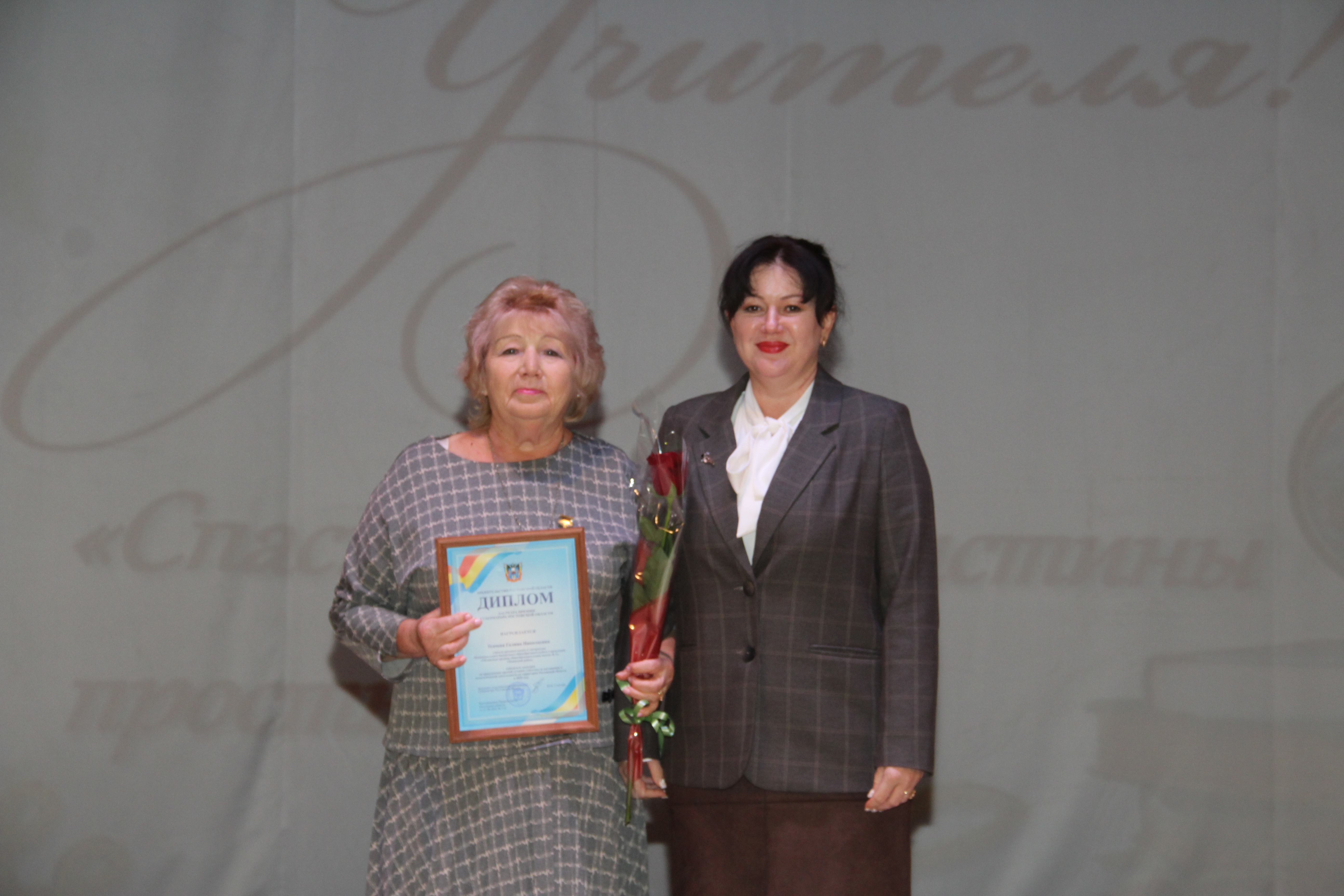 Торжественное праздничное мероприятие «Спасибо, Вам, за истины простые…», посвященное Всемирному Дню учителя, состоялось 3 октября в районном Доме культуры станицы Обливской. 03 октября 2025 Торжественное праздничное мероприятие «Спасибо, Вам, за истины простые…», посвященное Всемирному Дню учителя, состоялось 3 октября в районном Доме культуры станицы Обливской. В преддверии профессионального праздника чествовали педагогов, воспитателей, лучших учителей и ветеранов педагогического труда - истинных мастеров своего дела, первый заместитель Главы Администрации Обливского района Черноморова Елена Юрьевна и заведующий Отделом образования Малахова Нина Анатольевна. В знак глубокой признательности за высокий профессионализм, добросовестный труд и неоценимый вклад в развитие системы образования Обливского района педагогам и работникам сфер «Образование» и «Культура» были вручены заслуженные награды федерального, регионального и муниципального уровней. День учителя – это не просто дата в календаре, это священная возможность сказать «спасибо» тем, кто каждый день с любовью вкладывает частичку своей души в формирование будущего. Это день, когда мы с теплотой вспоминаем своих учителей, их мудрость, их наставления, их непоколебимую веру в нас. Праздничный концерт стал еще одним ярким напоминанием о том, насколько важна и благородна профессия учителя. Торжественное мероприятие было украшено плеядой ярких выступлений талантливых творческих коллективов Обливского ДДТ и школ района. Романс «Клён ты мой опавший…» на стихи поэта Сергея Есенина в его юбилейный день- 130- летие со дня рождения, прозвучал в незабываемом исполнении Татьяны Бралгиной. Музыкальные номера и танцевальные композиции создали неповторимую атмосферу праздника и подарили всем присутствующим незабываемые, трепетные эмоции. Ветераны педагогического труда были приглашены на праздничное чаепитие в завершении торжества.